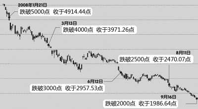 受國(guó)際市場(chǎng)大幅下跌影響,繼9月16日跌破2000點(diǎn)關(guān)口之后,上證綜指17日繼續(xù)下行,收于1929.05點(diǎn),股市重返“1”時(shí)代。
