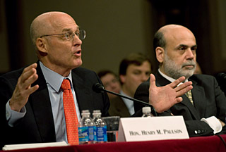 23日上午,美國財政部長保爾森、美國聯(lián)邦儲備委員會主席伯南克和美國證券交易委員會主席考克斯在國會作證,敦促國會議員盡快批準總額達7000億美元的金融救援計劃,并警告說如果不盡快批準,美國的金融市場和經(jīng)濟增長將受到嚴重威脅。