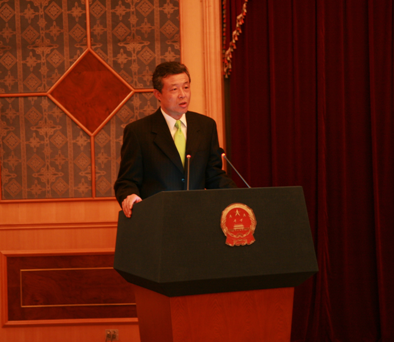 劉曉明大使首先致辭。他對(duì)金永日副外相率朝鮮外務(wù)省主管中國(guó)事務(wù)的同志們來(lái)我館參加聯(lián)誼活動(dòng)表示歡迎,感謝外務(wù)省同志們長(zhǎng)期以來(lái)為發(fā)展中朝關(guān)系做出的不懈努力和積極貢獻(xiàn)。他說(shuō),今年,在兩國(guó)最高領(lǐng)導(dǎo)人的關(guān)心下,中朝關(guān)系發(fā)展順利。雙方保持高層交往,胡錦濤總書記先后三次向金正日總書記轉(zhuǎn)達(dá)了重要口信。楊潔篪外長(zhǎng)就任后首次正式出訪即來(lái)朝鮮。不久前,中共中央政治局委員、書記處書記、中宣部長(zhǎng)劉云山同志訪問(wèn)朝鮮。中共十七大后,中央領(lǐng)導(dǎo)同志首次出訪即到朝鮮,體現(xiàn)了我黨新一屆中央領(lǐng)導(dǎo)集體高度重視并十分珍惜中朝傳統(tǒng)友誼,并將一如既往地致力于鞏固和發(fā)展中朝友好合作關(guān)系。金正日同志親切會(huì)見(jiàn)并設(shè)宴款待劉云山同志;他還于年初在時(shí)隔七年后來(lái)中國(guó)大使館做客,這些都體現(xiàn)了金正日總書記和朝鮮勞動(dòng)黨及政府對(duì)中朝兩黨、兩國(guó)關(guān)系的高度重視。