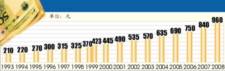 3月25日舉行的市政府新聞發(fā)布會(huì)透露,從今年4月1日起,上海市月最低工資標(biāo)準(zhǔn)從840元調(diào)整為960元,小時(shí)最低工資標(biāo)準(zhǔn)從7.5元調(diào)整為8元。這是上海自1993年建立最低工資制度以來(lái),第16次調(diào)整最低工資標(biāo)準(zhǔn),也是近16年來(lái)最低工資標(biāo)準(zhǔn)增加數(shù)額最大的一次。今日上海市政府對(duì)工資標(biāo)準(zhǔn)上調(diào)進(jìn)行了解讀。