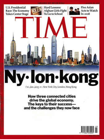 中新網(wǎng)1月20日電 著名雜志《時(shí)代》周刊在最新一期選了紐約、倫敦和香港三城作為全球化的模范,敘述這個(gè)以共同經(jīng)濟(jì)文化為特征的“三城故事”,文章并創(chuàng)造了一個(gè)新詞“紐倫港”(即紐約,倫敦,香港),指出認(rèn)識(shí)了這3個(gè)國(guó)際性大都會(huì),即等同認(rèn)識(shí)了這個(gè)全球化時(shí)代。