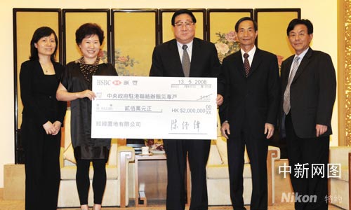 為及時讓捐款早日用于災(zāi)民, 13日由陳經(jīng)緯先生夫人向中央政府駐港聯(lián)絡(luò)辦呈交支票,聯(lián)絡(luò)辦主任高祀仁接受捐款時表示,非常感謝陳經(jīng)緯先生及經(jīng)緯置地有限公司的慷慨捐助,幫助國家救助災(zāi)區(qū)。至此,一向熱心社會公益事業(yè)的陳經(jīng)緯先生多年來在內(nèi)地用于救災(zāi)、扶貧、教育等社會公益事業(yè)的捐款共達7000多萬元。