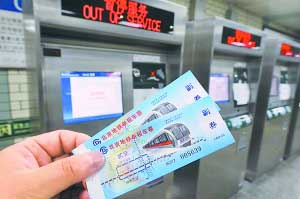 在運營了30多年后,北京地鐵終于將告別人工售檢票時代,一種全新的自動化售檢票系統(tǒng)將全新“上崗”,北京市民地鐵出行將真正徹底實現(xiàn)“一卡通行”。市交通委今天宣布,6月9日起,地鐵1、2、5、13號線和八通線的自動售檢票系統(tǒng)(AFC系統(tǒng))正式啟用,即將于近期通車的10號線1期、奧運支線、機(jī)場線也會在開通試運營之日起同步啟用AFC系統(tǒng)。這同時也意味著,本市地鐵紙票將正式退出歷史舞臺。