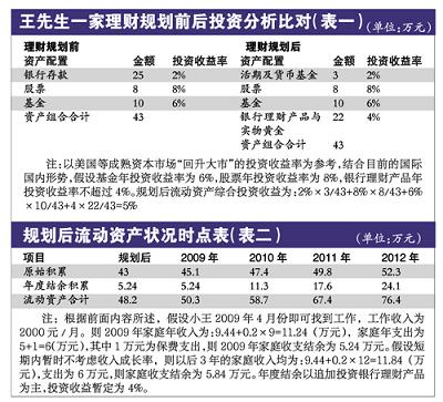王太太僅有基本的社會保險(xiǎn),醫(yī)療保障略顯不足,雖然已經(jīng)過了購買醫(yī)療保障的最佳年齡,但是仍建議王太太購買重疾險(xiǎn),以免突然大額的醫(yī)療費(fèi)用開支使家庭陷入財(cái)務(wù)困境。建議小王購買少量意外險(xiǎn)或者定期壽險(xiǎn),等收入狀況好一些再逐漸增加保額。家庭保費(fèi)支出大約為1萬元,由先生繳付,交費(fèi)期至退休時(shí)。