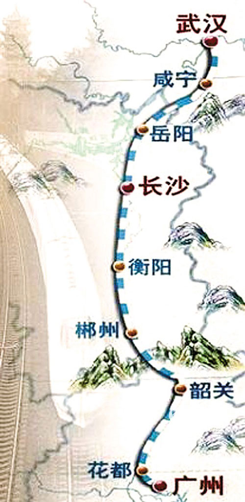 武廣客運(yùn)專線起于楊春湖畔的新武漢站,經(jīng)咸寧、赤壁、岳陽(yáng)、長(zhǎng)沙、株洲、衡陽(yáng)、郴州、韶關(guān)、花都,抵達(dá)番禺鐘村鎮(zhèn)的新廣州站,縱貫鄂、湘、粵三省。國(guó)內(nèi)幾乎所有大型鐵建單位都“搶”到了項(xiàng)目———大家都清楚,這場(chǎng)大會(huì)戰(zhàn)是一次絕好的練兵機(jī)會(huì),從中獲得的經(jīng)驗(yàn)可為日后更多、更龐大的高鐵工程提供參考。