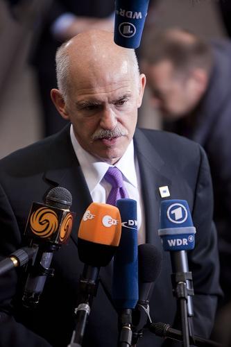 5月7日,希臘總理帕潘德里歐抵達(dá)比利時(shí)首都布魯塞爾歐盟委員會(huì)總部后接受采訪。歐元區(qū)16國領(lǐng)導(dǎo)人7日晚間在布魯塞爾召開特別峰會(huì),評估各國議會(huì)對2日啟動(dòng)的希臘救助機(jī)制的審批情況,并重點(diǎn)討論如何加強(qiáng)歐元區(qū)經(jīng)濟(jì)治理以及強(qiáng)化對成員國的財(cái)政監(jiān)督問題。 新華社發(fā)(莫納斯攝)