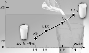 劉先生告訴記者,他家一直訂的衛(wèi)崗天元奶,2007年上半年的時(shí)候還是1.2元一瓶,2007年8月份漲到了1.4元,11月又漲了2毛到1.6元,時(shí)隔2個(gè)月,又要從1.6元漲到1.8元,算起來,這半年里,連漲兩次,每次都漲2毛錢,漲幅已經(jīng)遠(yuǎn)遠(yuǎn)超過10%!面對(duì)如此不斷的漲價(jià),劉先生說自己得考慮是不是該少訂點(diǎn)了!