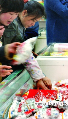 昨日,記者走訪家樂福、華潤萬家、吉之島等各大超市,看到各大賣場已經(jīng)摩拳擦掌開始元宵特賣,紛紛在賣場內(nèi)開辟湯圓特賣區(qū),廣州市場上湯圓的品種也多達(dá)70多種,口味主要有芝麻、花生、鮮肉、黑糯米等10多個(gè)。據(jù)介紹,芝麻、花生等傳統(tǒng)口味湯圓仍最受消費(fèi)者歡迎,而一些速凍食品企業(yè)為吸引年輕消費(fèi)群體,也推出巧克力、香橙等新口味的湯圓。業(yè)內(nèi)人士介紹,從品牌上來看,思念、三全、灣仔三大品牌的湯圓銷量最好,占銷售總量的六成以上。