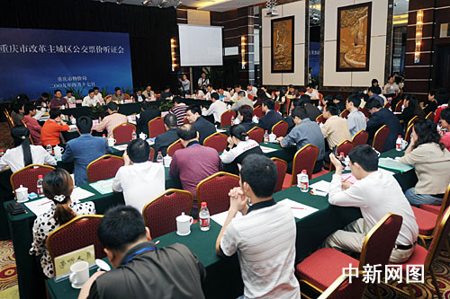 4月17日,重慶市舉行改革主城區(qū)公交票價聽證會,涉及主城800萬市民的出行問題,該市人大代表、市政協(xié)委員、消費者和學生代表在聽證會上發(fā)表了意見。下午聽證會結(jié)束時,十余名重慶市民手舉反公交漲價T恤站在聽證會門口反對漲價,引起眾多參會代表關(guān)注。