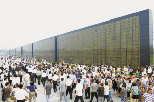 與此同時(shí),為方便群眾查找罹難親人的姓名,公園管理處采取在紀(jì)念墻上增設(shè)圖示銘牌的方式,完善了查詢系統(tǒng),在每面紀(jì)念墻的圖示銘牌上標(biāo)明與罹難者姓名相對(duì)應(yīng)的編號(hào),使前來祭掃的群眾能夠按照編號(hào)迅速查找到罹難親人姓名在紀(jì)念墻上的準(zhǔn)確位置。