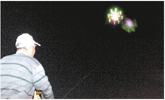 根據(jù)不明飛行物大概的方位,記者跟著“飛行物”方向一路尋找,發(fā)現(xiàn)不明飛行物就在火車頭體育場上空附近,體育場內(nèi)有人在放夜風(fēng)箏。原來燈光是夜風(fēng)箏上夜光設(shè)備不斷地發(fā)出不同顏色的光。