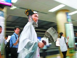 一位還算眉清目秀的年輕男子打扮成諸葛亮的樣子,在地鐵里忽而吟誦,忽而大笑,做出種種引人側(cè)目的動作。這是最近風靡網(wǎng)絡(luò)的又一個“神秘人物”。如此裝扮卻為何?是崇拜古人?是有病?或者干脆就是網(wǎng)絡(luò)推手在炒作?由于這位“亮叔”手中拿著一本剛上市的新書,網(wǎng)友們懷疑最后一種的可能性最大。