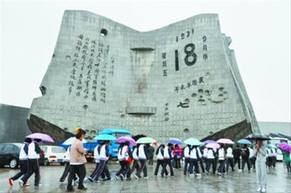 當(dāng)日,許多國內(nèi)外游客和當(dāng)?shù)厥忻瘛⒅行W(xué)生等冒雨來到沈陽“九·一八”歷史博物館參觀訪問。參觀隊伍長達(dá)百米,在博物館中人們重溫歷史,勿忘國恥,珍愛和平。據(jù)博物館介紹,近幾日每天大約有近萬人參觀游覽。