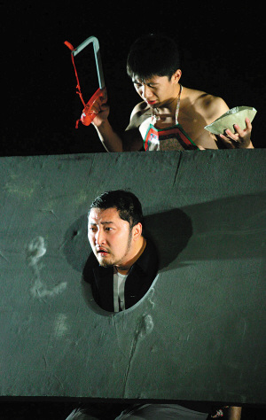 《回家》講述了一位老年癡呆癥患者想回家卻不能如愿的經(jīng)歷,不同于單線(xiàn)條敘述或故事性較強(qiáng)的商業(yè)話(huà)劇,該劇主角只是不斷夢(mèng)囈,訴說(shuō)著對(duì)自己的不滿(mǎn)、對(duì)過(guò)去的自責(zé)以及對(duì)當(dāng)下社會(huì)的種種困惑。全劇看似凌亂發(fā)散,實(shí)則容納了大量的信息,地溝油、三聚氰胺、畢業(yè)即失業(yè)、高房?jī)r(jià)、全球變暖、視頻裸聊、不再有一輩子的感情等一系列社會(huì)熱點(diǎn)問(wèn)題都被搬上了舞臺(tái)……雖然主題嚴(yán)肅,但也不乏笑點(diǎn),演出過(guò)程中現(xiàn)場(chǎng)不時(shí)爆發(fā)出觀眾會(huì)心的笑聲。該劇的舞臺(tái)設(shè)計(jì)相當(dāng)“樸素”,在相對(duì)空曠的舞臺(tái)上,主演黃澄澄和趙雷棋并沒(méi)有通過(guò)化妝去表現(xiàn)角色的年齡感,而是在揣摩老者的心理特征和思維方式后,以表演呈現(xiàn)出蒼老感。其他年輕演員也表現(xiàn)不俗,尤其在結(jié)尾處,他們以大量夸張的肢體動(dòng)作配以聲嘶力竭的控訴,掀起了全劇的最高潮。