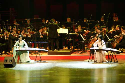 近日來(lái),這些活躍于國(guó)際樂(lè)壇、享有極高聲望的華人音樂(lè)家在國(guó)家大劇院內(nèi)進(jìn)行了緊張的彩排。黃英的《春江花月夜》、殷承宗的鋼琴協(xié)奏曲《黃河》,齊•寶力高的《心靈之歌》,袁莉袁莎姐妹的古箏曲目《漁舟唱晚》響徹國(guó)家大劇院的歌劇廳,激蕩人心。本次音樂(lè)盛典的一大特色是“中國(guó)旋律,西式演繹;傳統(tǒng)藝術(shù),現(xiàn)代表現(xiàn)”,這在連續(xù)兩日袁莉袁莎姐妹古箏演奏中得到了極好的體現(xiàn)。她們表示,古箏是中國(guó)的傳統(tǒng)樂(lè)器,但這一次就與交響樂(lè)合奏,擴(kuò)大了傳統(tǒng)的舞臺(tái),可以使更多的觀(guān)眾了解接受欣賞這一藝術(shù)。是一項(xiàng)很好的嘗試。在排練的同時(shí),這些藝術(shù)家們,時(shí)刻不忘災(zāi)區(qū)。他們多次詢(xún)問(wèn)災(zāi)區(qū)的情況,關(guān)注還在返鄉(xiāng)途中的同胞。不管他們能否有機(jī)會(huì)聽(tīng)到這些音樂(lè),都希望音符的傳揚(yáng)可以給他們帶去力量和希望。