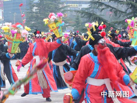 中新網(wǎng)蘭州2月10日電(聶娟)一年一度的蘭州春節(jié)文化廟會(huì)今日此間又是游人如織,熱鬧非凡。今天上午,東方紅廣場體育館前開始了“蘭州市精品社火爭霸賽”,來自蘭州城關(guān)區(qū)的威風(fēng)鑼敲響了歡慶的鑼鼓,祥和喜慶的節(jié)日氣氛,吸引了眾多正在出游的市民。