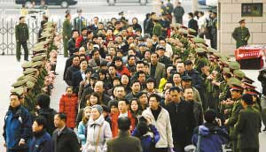 作為中宣部、國(guó)家文物局等聯(lián)合下發(fā)《關(guān)于全國(guó)博物館、紀(jì)念館免費(fèi)開(kāi)放的通知》后,北京地區(qū)首家免費(fèi)開(kāi)放的博物館,軍博實(shí)行免費(fèi)不免票的原則,市民憑身份證到以前的售票窗口免費(fèi)領(lǐng)取門(mén)票即可入場(chǎng)。8時(shí)30分,窗口的隊(duì)伍已經(jīng)超過(guò)了50米。發(fā)票開(kāi)始后,僅10分鐘就發(fā)放了310張門(mén)票。