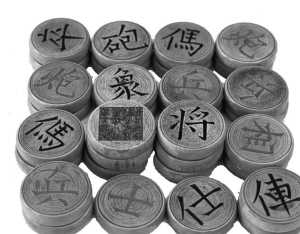 早期的象棋,一套棋具由棋、箸、局三種器具組成。棋共六子,分別為:梟、盧、雉、犢和兩枚塞。箸,相當(dāng)于骰子,在棋之前先要投箸。局,是一種方形的棋盤(pán)。比賽時(shí),“投六箸,行六棋”,斗巧斗智,相互進(jìn)攻逼迫,而置對(duì)方于死地。在這種棋制的基礎(chǔ)上,后來(lái)又出現(xiàn)一種叫“塞”的棋戲,只行棋不投箸,擺脫了早期象棋中僥幸取勝的成分。