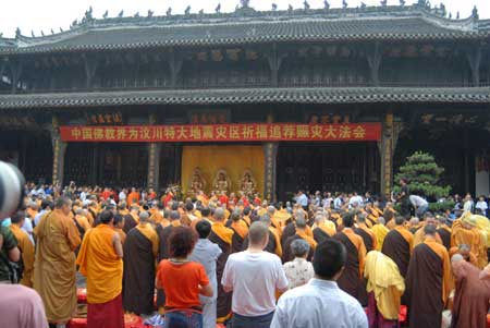 中國佛教界為汶川地震災(zāi)區(qū)祈福追薦賑災(zāi)大法會。