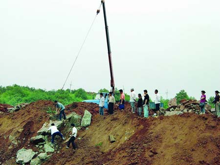 恐龍骨化石是6月23日在株洲市天元區(qū)蓮花小區(qū)二期工地發(fā)現(xiàn)的,當(dāng)時(shí)一塊重約3噸的石頭被炸開(kāi)后,石頭呈骨狀。6月27日上午,株洲市文物局局長(zhǎng)席道合帶領(lǐng)工作人員趕至工地調(diào)查,對(duì)怪石取樣鑒定,并將相關(guān)資料圖片送中科院古脊椎動(dòng)物研究所鑒定。