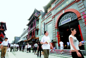 大柵欄地區(qū)東起前門大街,西至南新華街,南鄰珠市口西大街,北接前門西大街,總占地面積為1.1平方公里,是北京城區(qū)歷史延續(xù)最長的傳統(tǒng)市井商業(yè)區(qū)。目前,大柵欄商業(yè)街上仍以老字號產(chǎn)品及傳統(tǒng)商業(yè)相關(guān)服務(wù)為主要特色。重點(diǎn)老字號店鋪有同仁堂、張一元、內(nèi)聯(lián)升、瑞蚨祥、步瀛齋、大觀樓和狗不理、張小泉刀剪店共8家,占整條街店鋪總數(shù)的14.3%。這8家老字號企業(yè)營業(yè)面積占整條街總營業(yè)面積的27.7%,年銷售額約占整條街總營業(yè)收入的75%。
