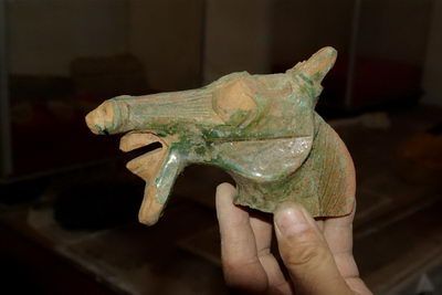 12日下午,記者來(lái)到武威市考古研究所文物庫(kù)房,文物工作者正在認(rèn)真地將每一件文物進(jìn)行整理。記者注意到,除了“雞鴨成群”的壯觀場(chǎng)面外,還有兩只靜臥的大尾巴狗、狀如“牛魔王”的鎮(zhèn)獸,件件令人嘆為觀止,也令在場(chǎng)的文物考古專(zhuān)家贊嘆。