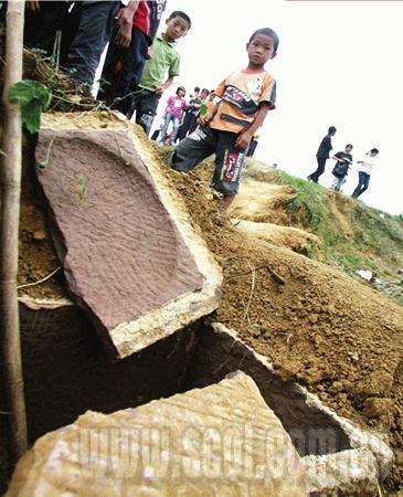 發(fā)現(xiàn)古墓的工人易德忠不停地拿著相機(jī)轉(zhuǎn)悠,見到記者他遺憾的說,“為了保護(hù)墓室,我們已按要求回填了泥土,恐怕在發(fā)掘完成前,你都見不到有著大柱子、梯步的墓室和精美的墓門板咯!惫拍谷含F(xiàn)場,記者只見到了未被封嚴(yán)的墳?zāi)苟纯,其上已?jīng)放置了大石板。墓里淌滿了水,但沒有異味。