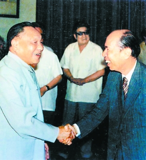 “我在上世紀(jì)50年代多次赴京參加國慶觀禮,與鄧小平見過面,但沒有機(jī)會交談。正式和鄧小平見面并談話是在1978年4月30日,那是‘五一’國際勞動節(jié)前夕,鄧小平以國務(wù)院副總理的身份接待港澳同胞和海外華人華僑代表,在人民大會堂幾千人的晚宴上,我有幸被安排坐在鄧小平的旁邊。同桌的還有葉帥!