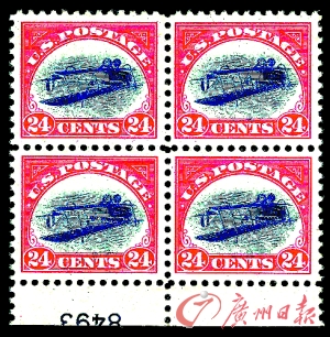 集郵界聞名遐邇的郵票“倒轉(zhuǎn)的珍妮”也在這次拍賣中賣出高價(jià)。這枚1918年發(fā)行的航空郵票面值24美分,由于郵票上的飛機(jī)圖案被印倒了,當(dāng)時(shí)只印制了100枚,因此十分珍貴。紐約州新羅謝爾的郵票經(jīng)銷商哈里·哈根多夫以38.8萬美元拍得這枚郵票。