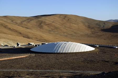 影片的高潮發(fā)生在智利的歐洲南方天文臺(tái),這里邦德和他的對(duì)手展開了最后的殊死搏斗。該天文臺(tái)位于阿塔卡馬沙漠中海拔2400米的山峰上,由德國(guó)建筑師奧爾和韋伯設(shè)計(jì),條紋狀表面的建筑物埋藏在荒蕪的沙漠下,由玻璃圓頂采光照亮室內(nèi)的花園和游泳池。由于該建筑坐落在非常偏僻的地方,人們很難有機(jī)會(huì)親臨現(xiàn)場(chǎng),因此這部電影是欣賞這座建筑物的絕好機(jī)會(huì)。有動(dòng)感的混凝土外表面、泥土色調(diào)的內(nèi)表面、深深的內(nèi)部透視空間,還有精致的細(xì)節(jié)……最后,觀眾將從鏡頭里看到它毀滅殆盡。
