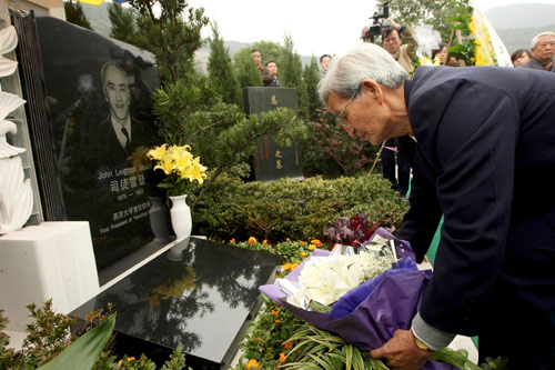 來自北京、上海、杭州等地燕京大學(xué)校友代表參加了十七日的安葬儀式。燕京大學(xué)校友會(huì)北京校友代表國(guó)仲元先生把一捧潔白的百合花輕輕地放在墓碑前:“老校長(zhǎng),您安息吧!
