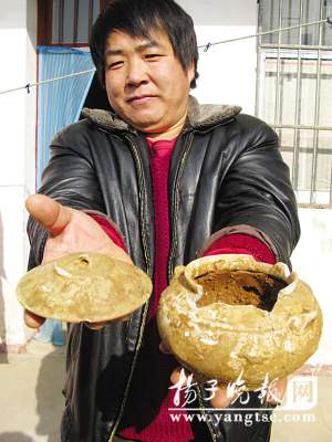 在發(fā)掘中,考古人員發(fā)現了4個盜洞?脊湃藛T向記者描述,這4個盜洞中,其中有兩個在墓道上方,由于下面有著25層填土石,最長的達10米,估計盜墓賊無從下手,只好放棄了。而后方的墓室頂部就沒能幸免,盜墓賊從墓室頂部又打了兩個盜洞,這里是土層封頂,為盜墓賊提供了方便。在盜洞里,考古人員發(fā)現盜墓賊留下的瓷片,“從瓷片來判斷,是宋代的。瓷片型制表明是生活用品,可能是盜墓賊當年使用的油燈!彪y道是一座宋代古墓?不可能。考古人員憑經驗認為,下面一定葬有更早期的墓葬。隨著盜洞周圍的探挖不斷進展,考古人員發(fā)現,古墓中不斷出現散落的青磚,這是為什么?難道古墓完全被盜過了?挖掘到底部時,令考古人員十分痛惜,這處古墓葬的墓室部分遭到嚴重破損,墓壁四周的青磚基本被推倒,只留下了不到20厘米高的幾層墓壁,沒有發(fā)現棺釘和大量文物。專家分析,可能是該墓室被遷移,而非盜墓者所為。