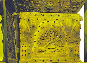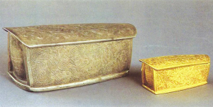 蔣老告訴記者,七寶鎏金塔是分開(kāi)組裝的,由塔剎、山花蕉葉、塔身和塔座組成。他從塔身部位的側(cè)面一個(gè)破損的縫隙中,可以看見(jiàn)寶塔的木制結(jié)構(gòu)。目前,從X光探視圖分析,其中盛放著銀槨,銀槨內(nèi)還放著一個(gè)金棺,金棺內(nèi)可能有一個(gè)琉璃盒,里面應(yīng)該供奉著石碑上記載的:“圣感舍利十顆”、“佛頂真骨(釋迦牟尼)”、“諸圣舍利”。那么這批圣物究竟是從何而來(lái)的呢?