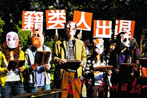 昨日下午2時30分許,行為藝術(shù)家流野、黎永泰等帶領(lǐng)40余人在廣州人民公園舉行儀式,宣布“退出人類籍”,并表演了“退人類操”。他們還選出10個退出人類后甘愿進化為動物的先進分子進行了宣誓。誓詞的大意為:我甘愿退出人類籍,順應(yīng)天理,遵守大自然的規(guī)律與公道,執(zhí)行造化的暗示,正義地反對人類為所欲為的戰(zhàn)爭、掠奪與虛偽,為宇宙、自然界的真正和諧解放而奮斗終身!此舉引來數(shù)百人聚集圍觀,公園方面如臨大敵,派出保安現(xiàn)場維持秩序。儀式結(jié)束后,40余個宣稱已經(jīng)是動物不是人類的行為藝術(shù)家,還舉著“退出人類籍”牌步行15分鐘,到附近菜市場慰問了待宰的動物,表示慰問和默哀。