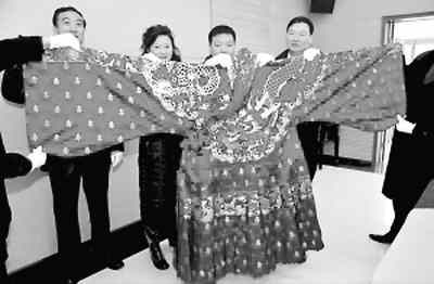 18條五彩龍、540只仙鶴、540個靈芝、1045個金色正楷壽字……南京云錦研究所歷時3年,完全按照明定陵出土原件復(fù)制成功的“織錦金壽字龍云肩通袖龍襕妝花緞襯褶袍”,日前正式移交給定陵博物館(見圖)。復(fù)制成功的龍袍通體為絳紅色,上面滿是彩色圖案紋飾,顯得非常華貴精美。