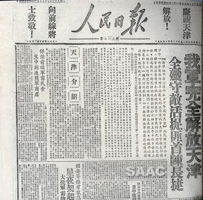 3.1949年1月16日,《人民日報》關于天津解放的報道
