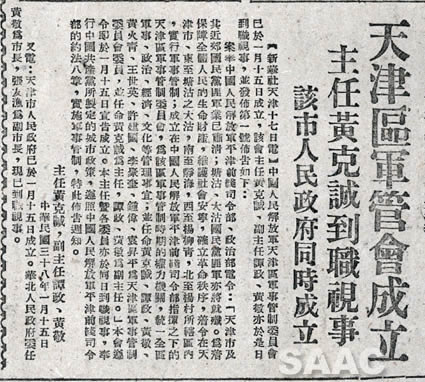5. 1949年1月19日,《人民日報》關于天津區(qū)軍管會成立的報道