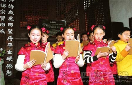 據(jù)介紹,自宋代以來,文人墨客們都會在每年春節(jié)初七“人日”這天,走進(jìn)杜甫曾居住過的草堂,吟誦詩歌祭拜詩圣。今年杜甫草堂博物館特意在祭拜詩圣杜甫儀式中斷百年之后重新恢復(fù),是對草堂“人日”活動的充實,更是對詩歌文化內(nèi)涵的進(jìn)一步傳承和弘揚。
