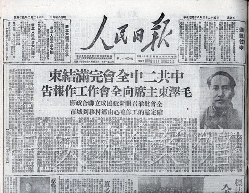 3.1949年3月25日,《人民日?qǐng)?bào)》關(guān)于中共七屆二中全會(huì)的報(bào)道