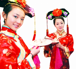 無論民間、官場在宴會的時候一定是男女分席,沒有說夫婦兩人擠在一個桌子上的。還有,八仙桌最多坐六個人。清裝戲里不該有大圓桌,大圓桌是民國以后才有,而且只能坐九人,不能坐十人,正對面留一個菜口。