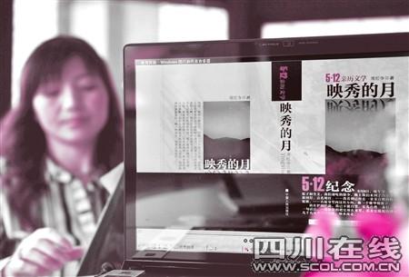 “你好,我是周紅令!毕挛2點(diǎn),周紅令帶著筆記本電腦出現(xiàn)在記者面前,她蓄著優(yōu)雅的長卷發(fā),素雅的條紋襯衫剪裁合身。在成都鬧市,她有兩家玉石門市,是個(gè)有些小資的女老板。周紅令打開電腦,已經(jīng)排好版的作品《映秀的月》快速閃過,一張地震時(shí)渾身是泥的照片,讓她有些羞赧。