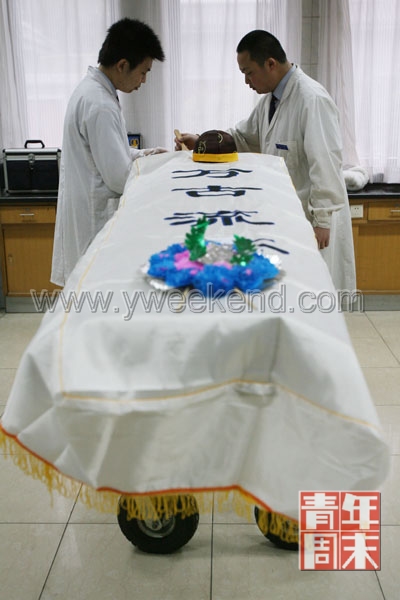 這是年輕的整容師一天中最普通的一單工作,只用時10分鐘。一天最少完成20具。對于張洋來說,早已習(xí)慣了這份工作。“或者說,我必須學(xué)會麻木!睆堁蟾嬖V記者。
