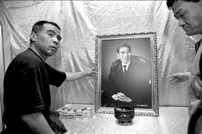 在李老家的臥室里,李文華的老伴苑福云老人在整理著李老生前的一大摞照片。老人一會兒翻看當年姜昆、李文華合作時意氣風發(fā)的舞臺照,一會兒又端起李文華的單人藝術(shù)照,不時念叨說:“你看他年輕時候多喜興,這張穿中山裝的就特精神!痹防细嬖V記者,靈堂中擺放的那張巨幅彩照,是中國照相館的師傅給拍的!2005年,中國照相館專為明星拍肖像照片的師傅,現(xiàn)在看來,這張照片拍得特別好,誰也看不出他患病來,精神很振作!