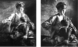 燕婭婭說,從1987年第一次上帕米爾高原開始,這些年來她一共16次遠(yuǎn)赴帕米爾高原和她所畫的塔吉克人朝夕相處,帕米爾高原簡(jiǎn)直就成了她魂?duì)繅?mèng)繞的第二故鄉(xiāng)!霸偕吓撩谞柛咴,畫畫已經(jīng)不再是主要目的,而是為了探望‘親人’。很多孩子,我從她7歲開始畫她,一直畫到她十七八歲出嫁。我是看著他們長(zhǎng)大的!敝劣谘θA克,“他只跟著我上了一次帕米爾高原,站在我身后拍我的模特!