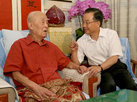 溫家寶送來(lái)一盆枝繁葉茂的君子蘭,向這位學(xué)貫中西、筆耕一生、在海內(nèi)外享有盛譽(yù)的學(xué)者表示敬意。