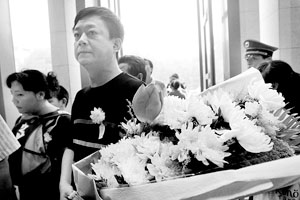 在朱軍從靈堂后門出來(lái)時(shí),本報(bào)記者對(duì)他進(jìn)行了采訪。