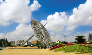 ■ 陳逸飛環(huán)境藝術公司創(chuàng)作的日晷雕塑矗立在浦東世紀大道上