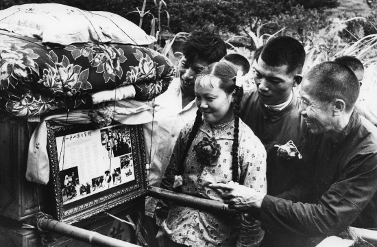 徐永輝向我們展示的厚厚資料照片,第一張就是1950年第一次拿起相機(jī)拍攝的照片。當(dāng)時(shí),第一次下鄉(xiāng)的徐永輝,循著“解放區(qū)的天是睛朗的天”的歌聲,找到了嘉興農(nóng)民葉根土的家,為他們?nèi)遗南铝艘粡堃律酪h褸的全家福。從這一天起,他就開始了對葉根土一家堅(jiān)持不懈的追蹤拍攝。3年后,葉家大女兒結(jié)婚,特地請徐永輝當(dāng)嘉賓,徐永輝送上的賀禮是新舊兩張“全家!保桓磷鳛閭骷覍氋(zèng)給女兒當(dāng)“嫁妝”。