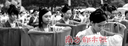 “每走一步、袖子怎么擺動(dòng),都有講究!睆V東省民俗文化研究會(huì)副秘書長、珠村民俗專家潘劍明是儀式主持,他透露,此次演出專門請(qǐng)來“漢禮”專家按歷史傳統(tǒng)還原場(chǎng)面。