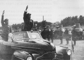 毛澤東等“五大書記”身穿解放區(qū)那種厚厚的棉褲、胖胖的棉鞋、羊毛外露的大衣,乘坐一輛美國造的老道吉防彈車,檢閱了整裝肅立的一個步兵師、一個炮兵師、一個裝甲兵師,大約3萬余人,還有穿著各式各樣服裝的北平市工、農(nóng)、商、學(xué)各界代表和各民主黨派、人民團體、無黨派民主人士。其中包括為和平解放北平古都作出貢獻的傅作義將軍。